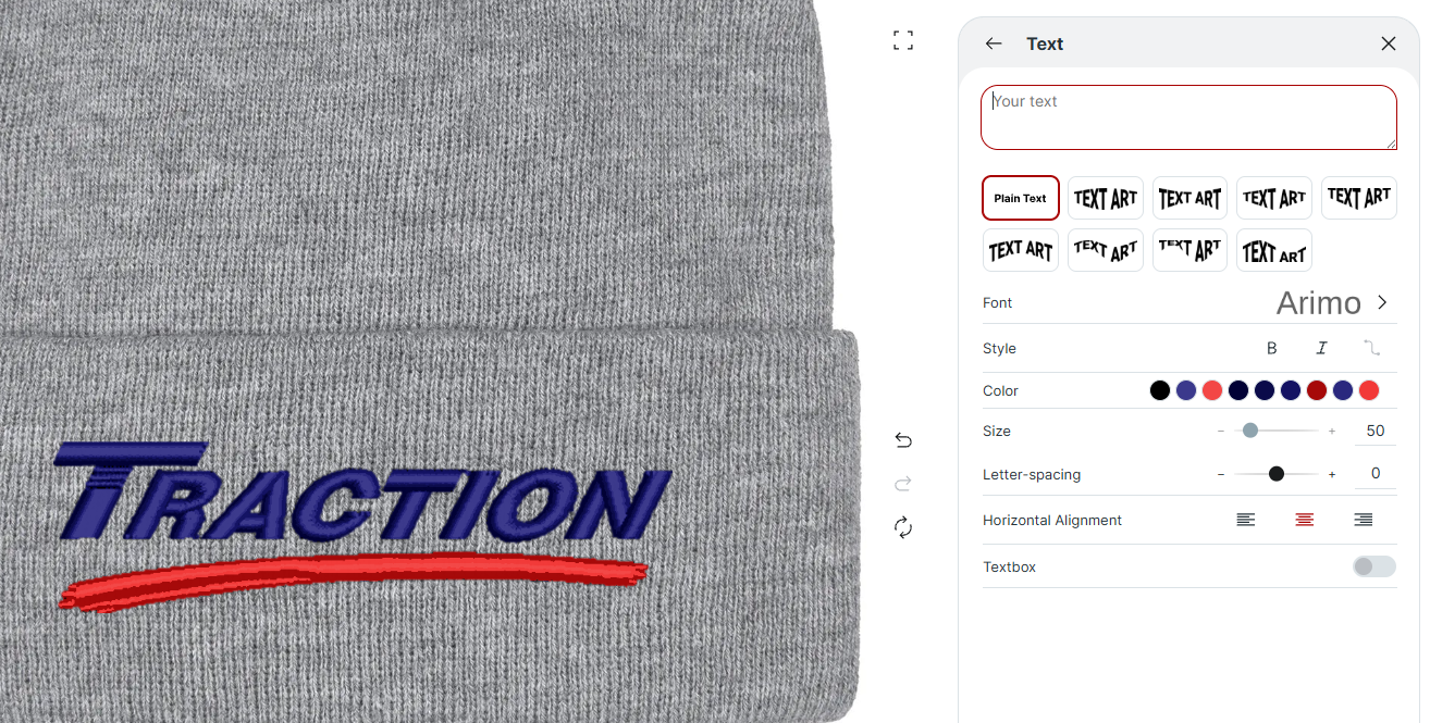 Upload your logo, add text and create a toque that’s uniquely yours!